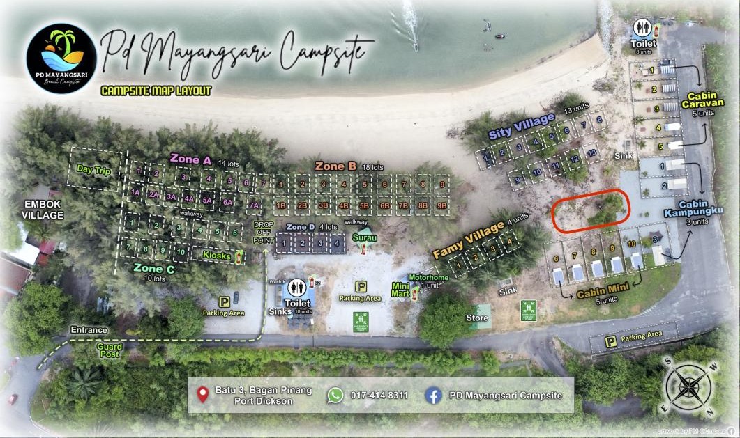 Lot size approximately: 6m (width) x 8m (length) Max 1 unit campercar (RTT, side-awning) or Max 1 unit Large Tent (non campercar, car need to park at parking lot) or 2 units Medium/Small Tent (non campercar, car need to park at parking lot) Max pax: 6 pax Lot 1 - 3 non-seaview lots Warning: Hot Area! Check in: starts 10am Check out: last 8pm Other charges rate: 1. Parking: RM5 per car (pay once) 2. Toilet: RM5 per car (Day Trip) RM10 per car (2D1N) RM15 per car (3D2N) 3. Electric: RM10 per night per lot 4. Wire Extension: RM10 per wire (pay once) Remarks: Other charges pay upon arrival at campsite.